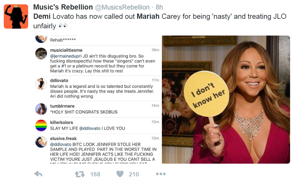 เกาเหลาชามใหม่ Demi Lovatoบอกว่าการกระทำของรุ่นพี่ Mariah Carey นั้น "น่ารังเกียจ"